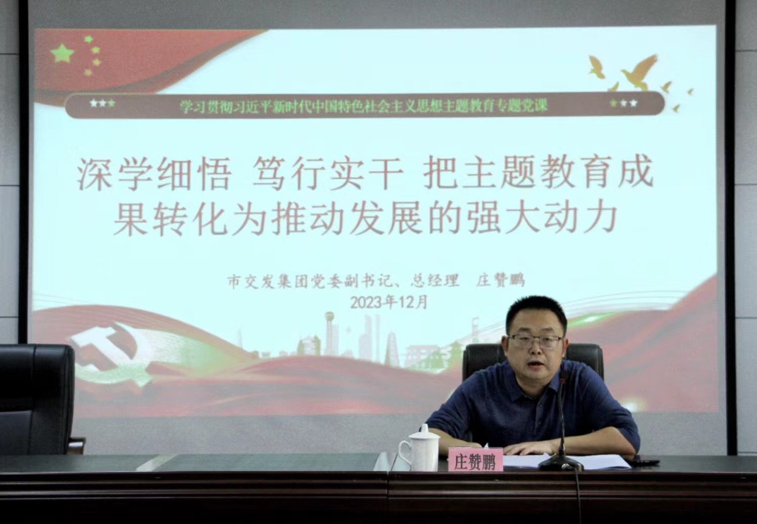 為扎實(shí)開展學(xué)習(xí)貫徹習(xí)近平新時(shí)代中國特色社會(huì)主義思想主題教育,推動(dòng)學(xué)習(xí)成效和成果轉(zhuǎn)化在基層縱向延伸,12月14日,市交發(fā)集團(tuán)黨委副書記、總經(jīng)理莊贊鵬到市路橋集團(tuán)講授題為《深學(xué)細(xì)悟 篤行實(shí)干 把主題教育成果轉(zhuǎn)化為推動(dòng)發(fā)展的強(qiáng)大動(dòng)力》的專題黨課。