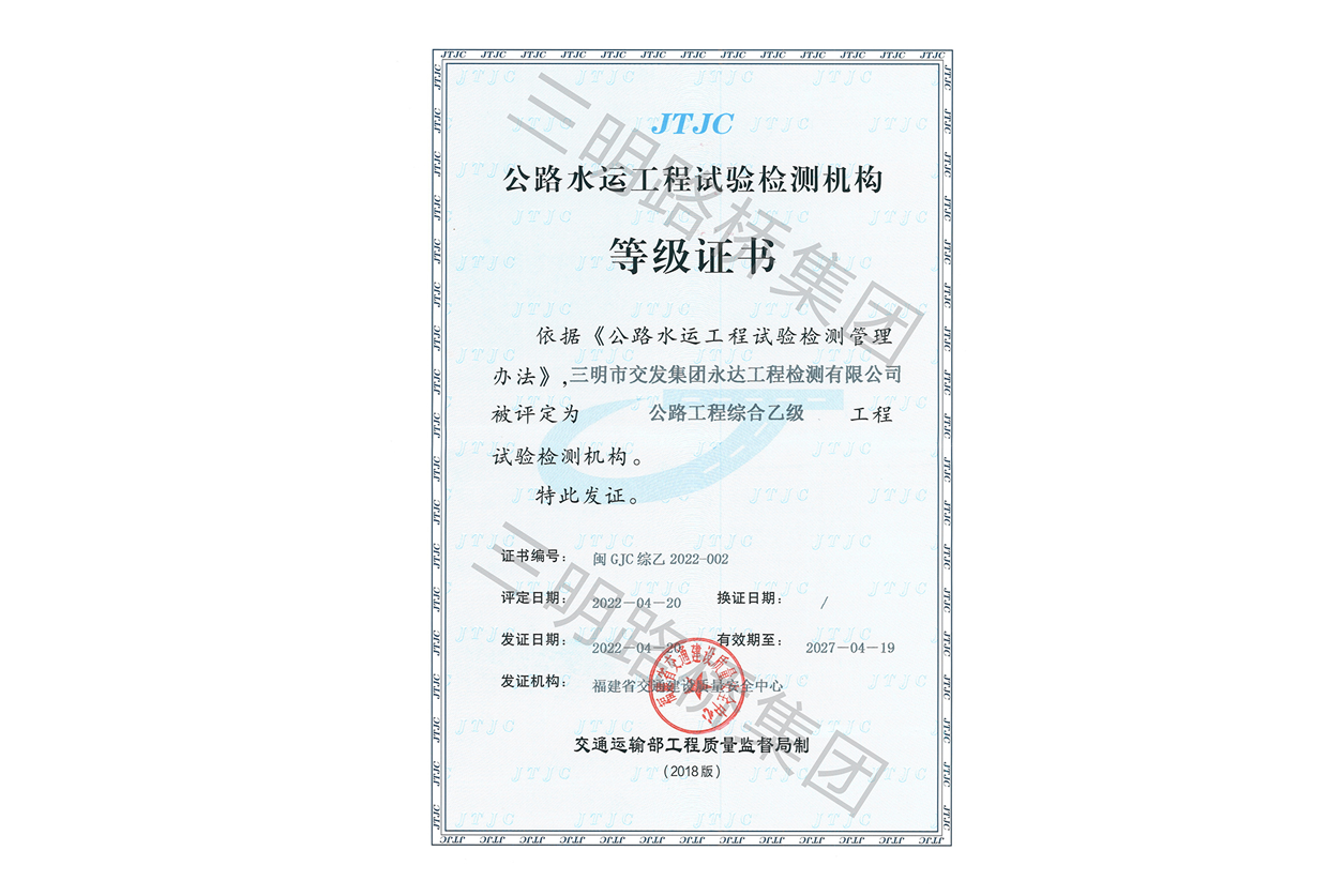 公路工程綜合乙級(jí)工程測(cè)試檢驗(yàn)機(jī)構(gòu)