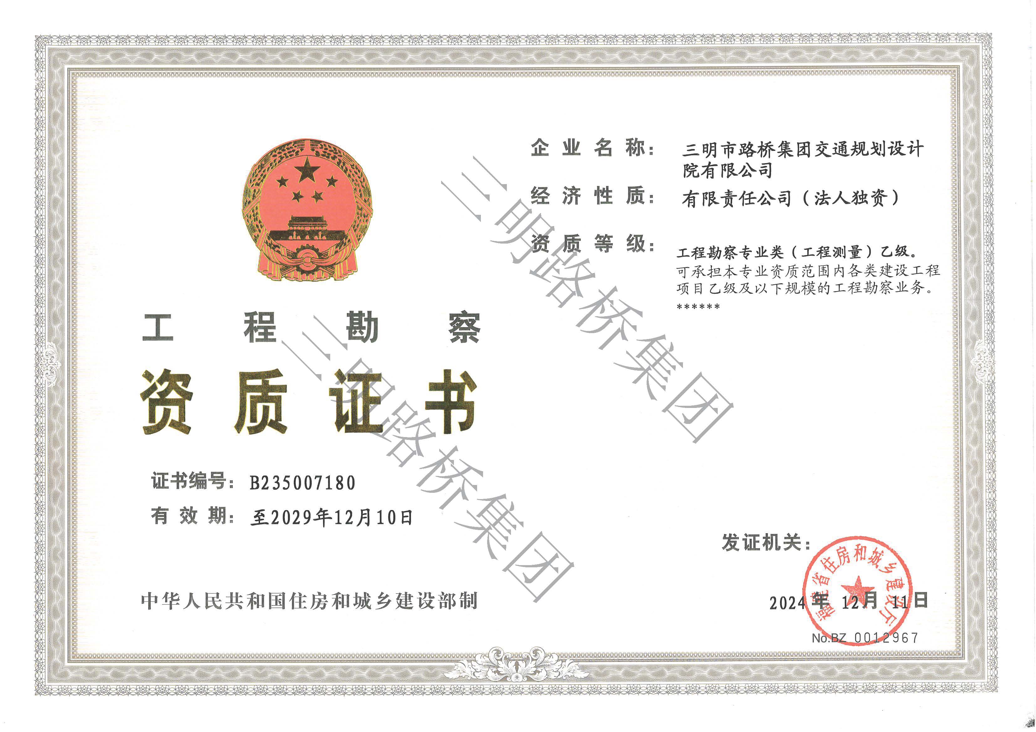 工程勘察專業(yè)類乙級(jí)