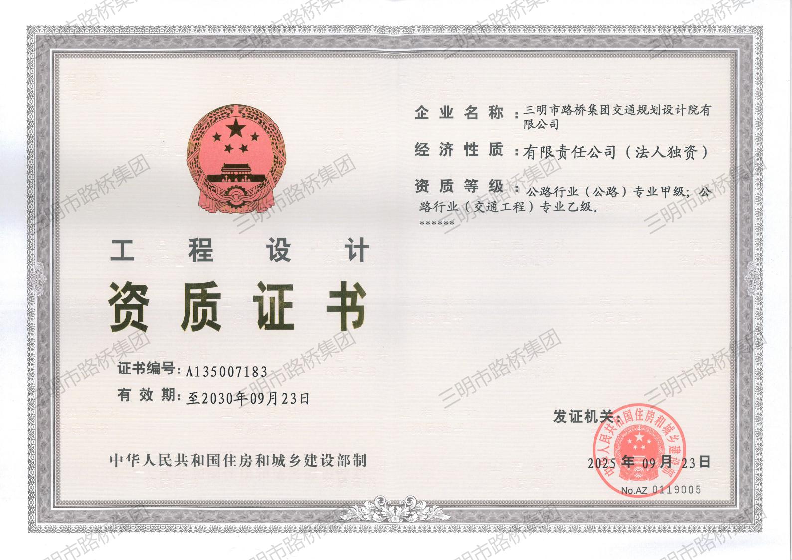 公路設(shè)計(jì)專業(yè)甲級(jí)、交通工程設(shè)計(jì)專業(yè)乙級(jí)