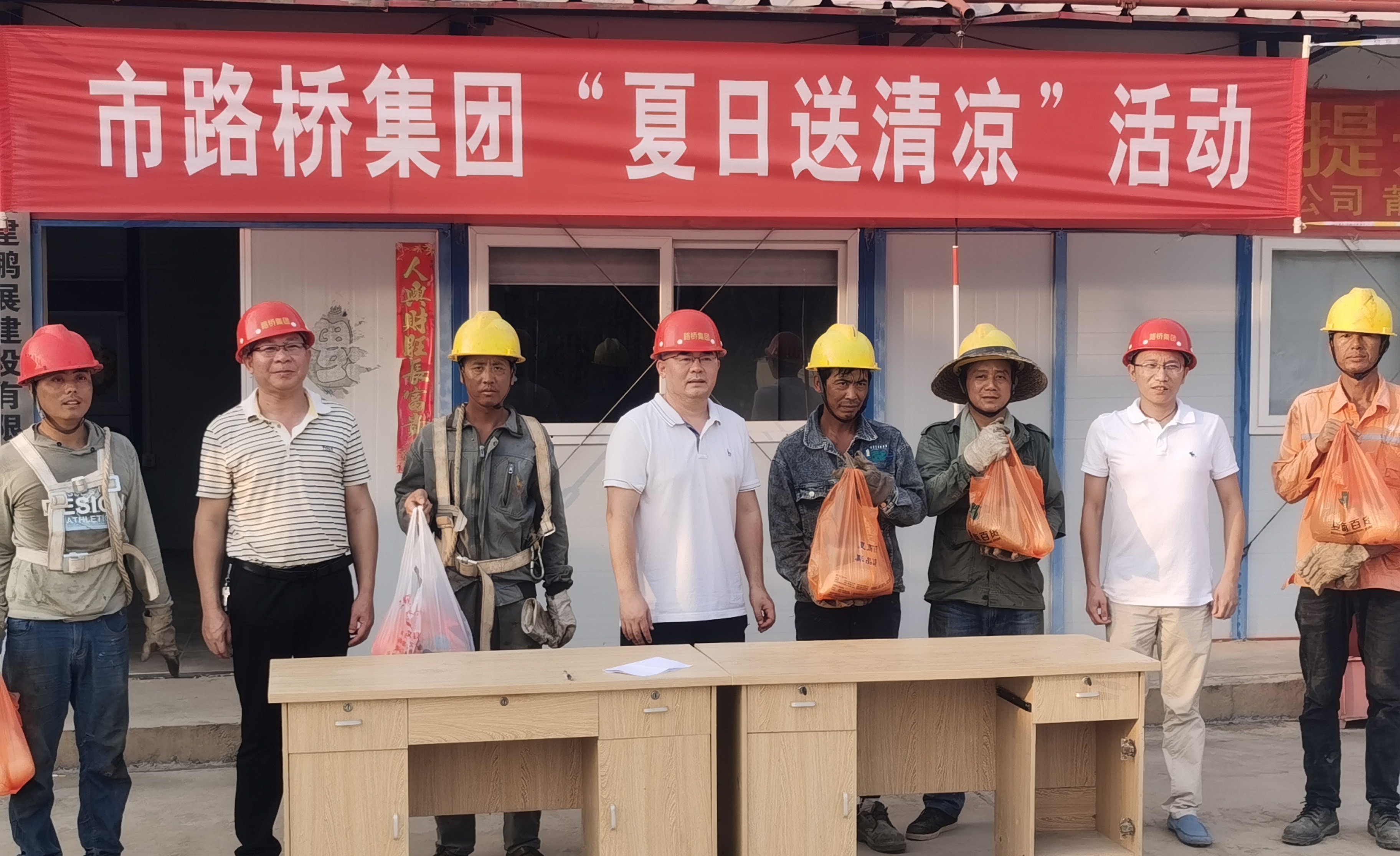 驕陽(yáng)似火,暑氣逼人。近日,市路橋集團(tuán)開(kāi)展“夏日送清涼”活動(dòng),集團(tuán)公司領(lǐng)導(dǎo)分別帶領(lǐng)慰問(wèn)組深入項(xiàng)目一線,看望慰問(wèn)高溫酷暑下堅(jiān)守在一線、驕陽(yáng)烈日中工作在一線的勞動(dòng)者們,為他們送去關(guān)懷和問(wèn)候。