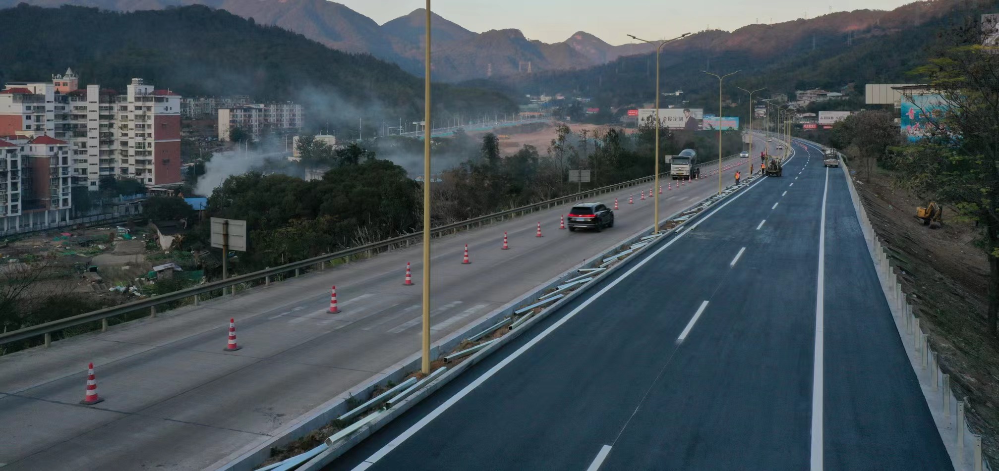 12月27日,三明市長(zhǎng)深高速北連接線提升改造工程取得階段性成果,右幅瀝青路面提前完成攤鋪工作,極大增強(qiáng)了路面的耐久性和行車(chē)的舒適度,同時(shí)減少了噪音和灰塵對(duì)周邊環(huán)境的影響。