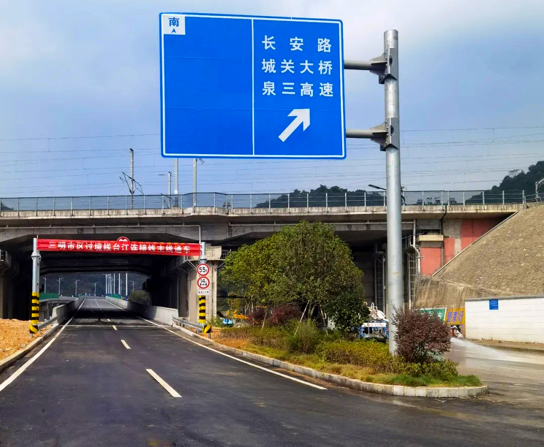 10月30日,國道G205線市區(qū)過境線至三明站連接線建成通車。該項(xiàng)目總投資2.6億元,線路全長2.56公里,起于臺(tái)江大橋西側(cè)橋頭,下穿南三龍快速鐵路,上跨長安路、鷹廈鐵路,終點(diǎn)與國道205線市區(qū)過境線相接,按城市主干道兼二級(jí)公路等級(jí)標(biāo)準(zhǔn)設(shè)計(jì),雙向四車道,設(shè)計(jì)時(shí)速60公里/小時(shí)。