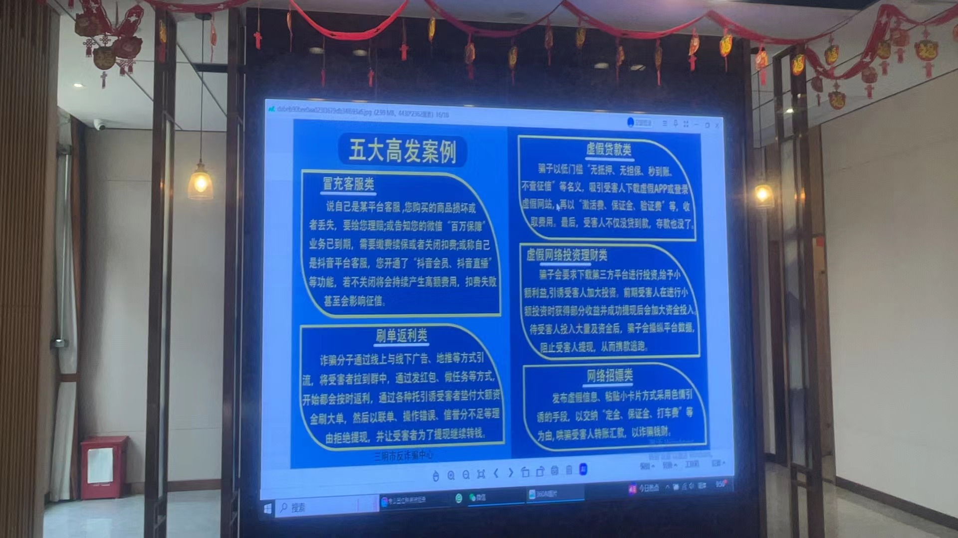 市路橋集團(tuán)通過線上線下多樣化宣傳反詐活動。線上通過員工微信群,持續(xù)推送詐騙案例、作案手段等反詐知識鏈接,發(fā)動員工積極轉(zhuǎn)發(fā)分享,擴大宣傳覆蓋面;線下通過利用LED屏、擺放宣傳展板等方式在人員密集場所普及防范電信網(wǎng)絡(luò)詐騙的方法,持續(xù)不斷提高大家對電信詐騙的“心防”意識、“識詐”能力。
