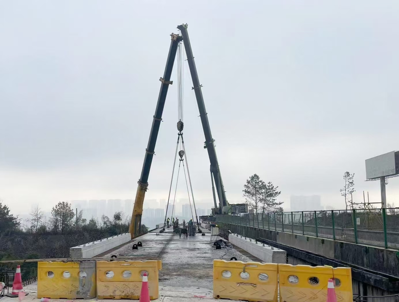壟東跨高速橋作為拉通主線的重要通道,同時也是該項目的控制性工程。該橋全長66米,橫跨長深高速,橋位處最大橋面高約7.3米,橋面凈寬8米,為鋼箱梁結(jié)構(gòu)。施工期間,項目建設團隊緊盯節(jié)點目標精心安排部署,克服運輸距離遠等不利因素,嚴格開展吊裝前技術和安全交底,全面推進鋼箱梁吊裝作業(yè),最終實現(xiàn)壟東跨高速橋順利架通。
