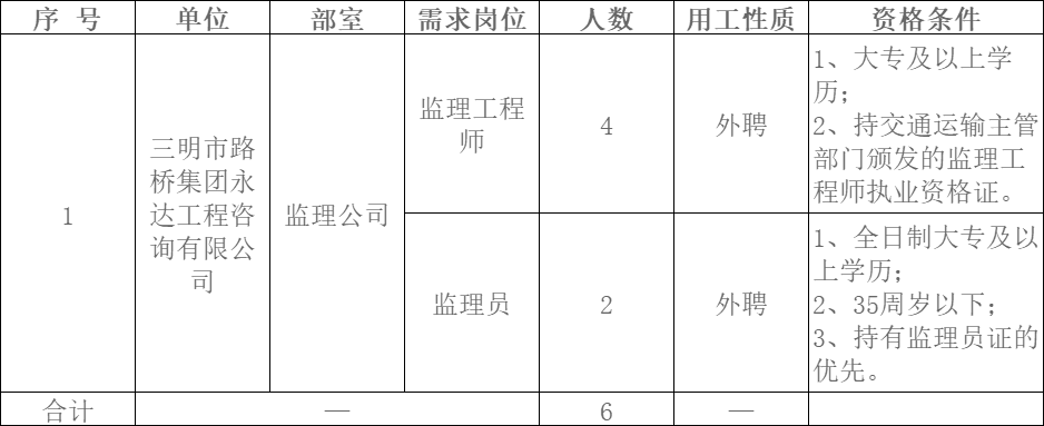 (一)公告。招聘崗位、人數(shù)、任職資格等信息在 “三明市路橋集團(tuán)”官網(wǎng)(www.cqszmy.cn)及“一覽監(jiān)理英才網(wǎng)”官網(wǎng)(http://www.jljob88.com)向社會統(tǒng)一公告。
