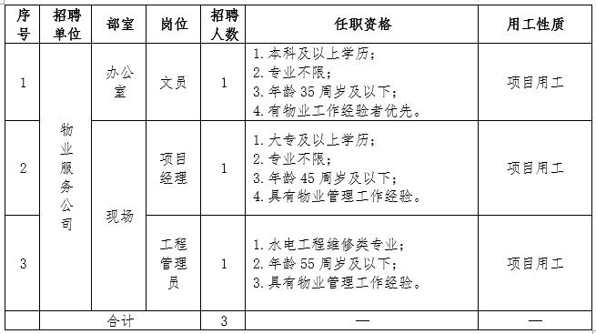 因工作需要,按照公開、公平、公正、競爭擇優(yōu)的原則,面向社會公開招聘項目用工3名,現(xiàn)將崗位招聘信息發(fā)布如下: