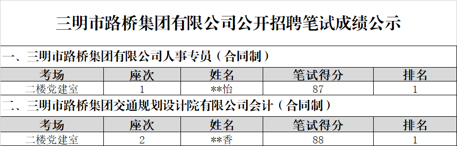 市路橋集團(tuán)公開招聘筆試環(huán)節(jié)已于2023年11月3日完成,現(xiàn)將筆試成績(jī)予以公示:
