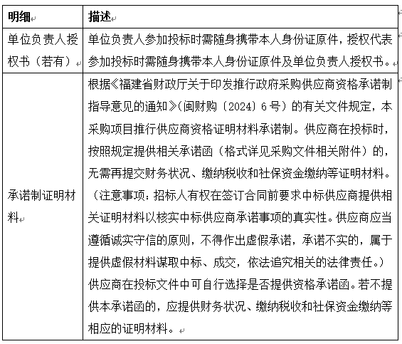 ※根據(jù)上述資格要求,供應(yīng)商響應(yīng)文件中應(yīng)提交的“資格證明文件”相關(guān)規(guī)定和資料要求,詳見競爭性磋商須知前附表和磋商文件第五章。