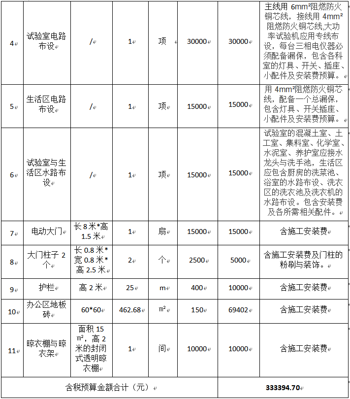 采購最高控制費(fèi)用為333394.7元,采購項(xiàng)目及數(shù)量規(guī)格要求等如下表: