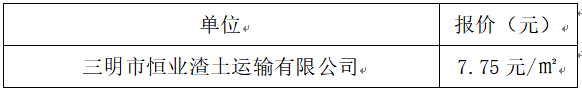 三明市交發(fā)物業(yè)服務(wù)有限公司交發(fā)首郡裝修垃圾清運(yùn)項(xiàng)目(第二次)詢價(jià),于2025年4月30日在交發(fā)大廈13樓1310室開標(biāo),現(xiàn)將最終中標(biāo)結(jié)果公示如下: