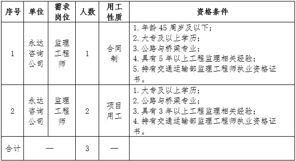 因工作需要,按照公開、公平、公正、競爭擇優(yōu)的原則,面向社會(huì)公開招聘人員3人,現(xiàn)將崗位招聘信息發(fā)布如下: