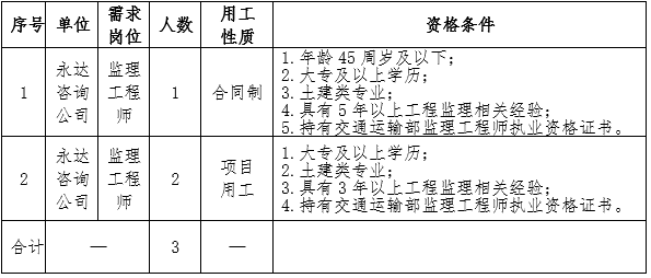 因工作需要,按照公開、公平、公正、競爭擇優(yōu)的原則,面向社會公開招聘人員3人,現(xiàn)將崗位招聘信息發(fā)布如下: